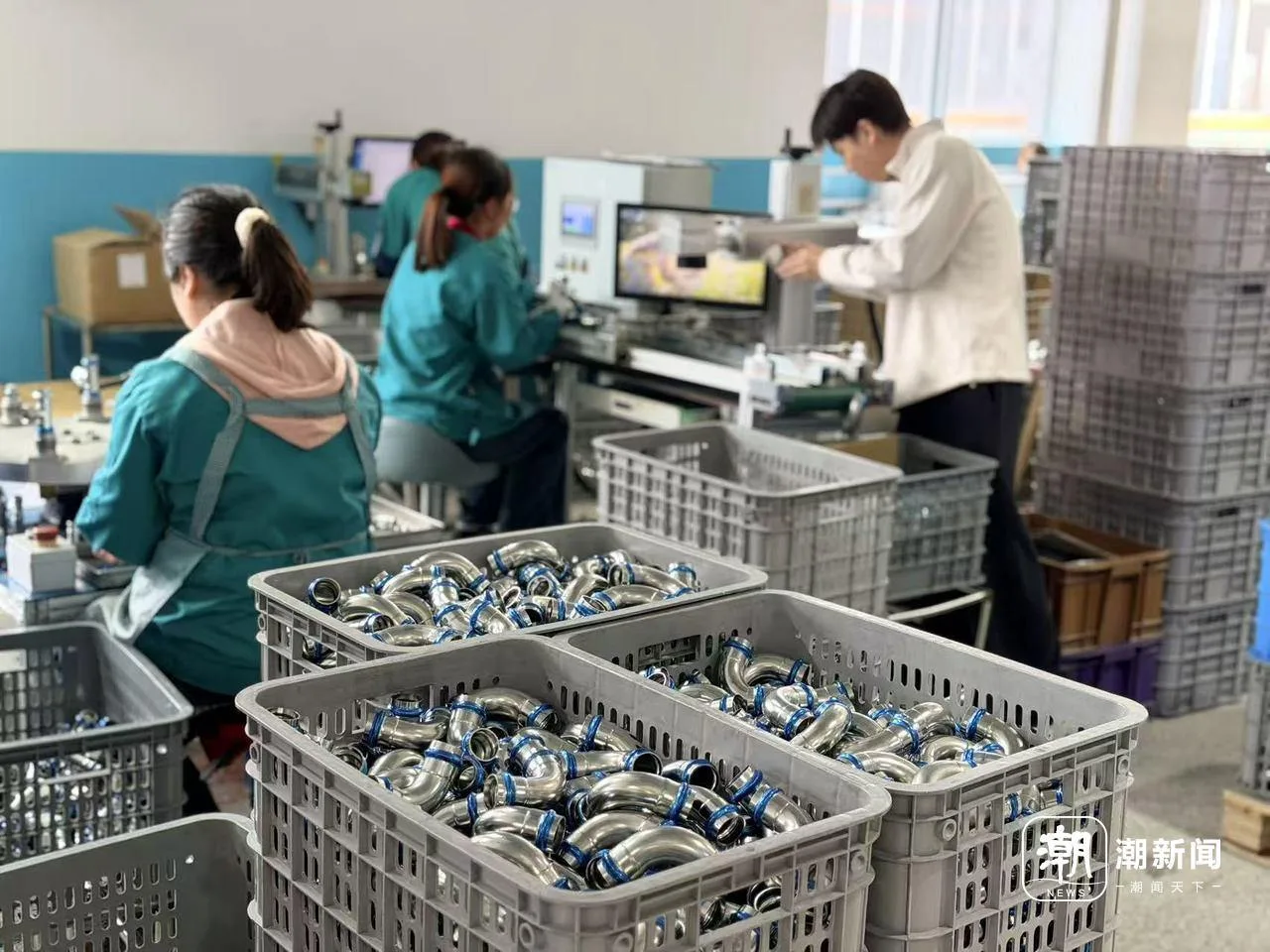 浙江康通环保科技有限公司车间内待发货的不锈钢管件。张银燕 摄