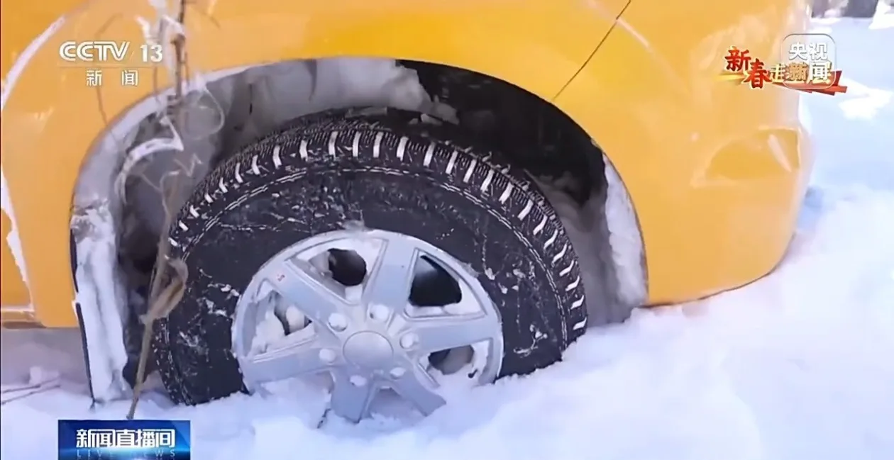 快速清扫完基站积雪,确认设备正常后,柴瑞峰驱车前往下一站——山顶瞭望塔。一路上,既有厚厚的冰道,也有暗藏的松软雪层。尽管柴瑞峰一直小心驾驶,但在一处弯道上,他的车还是陷进了雪地中。