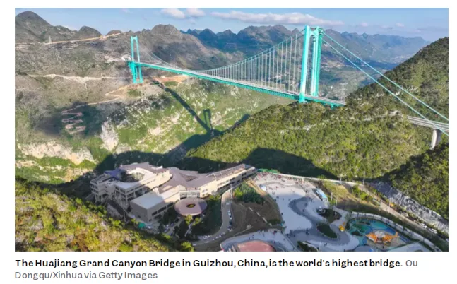 美国《商业内幕》网站报道截图,图为贵州花江峡谷大桥