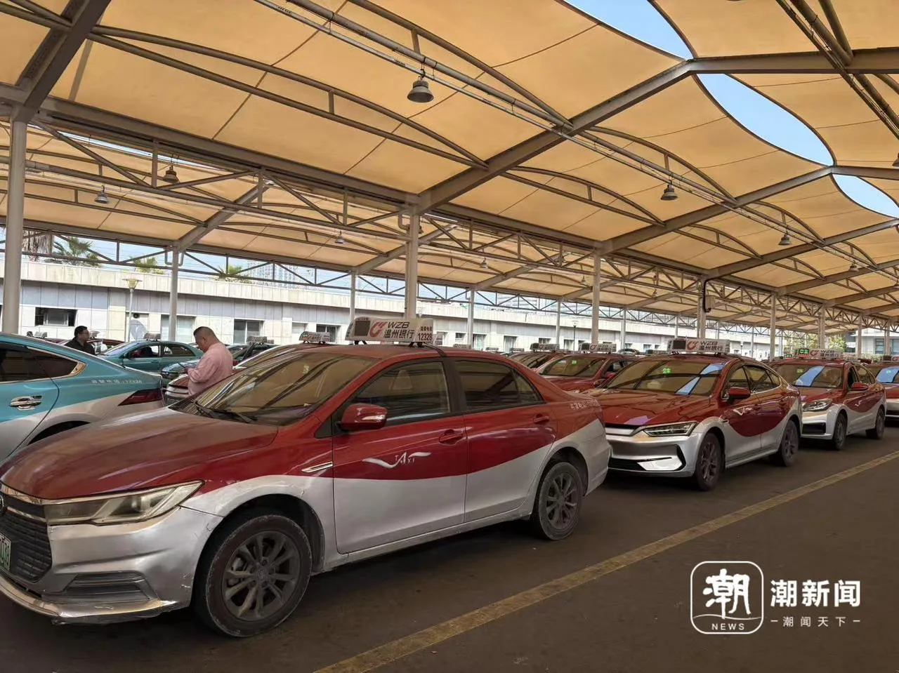 温州铁路南站出租车蓄车场内有序排队。记者 王艳琼 摄