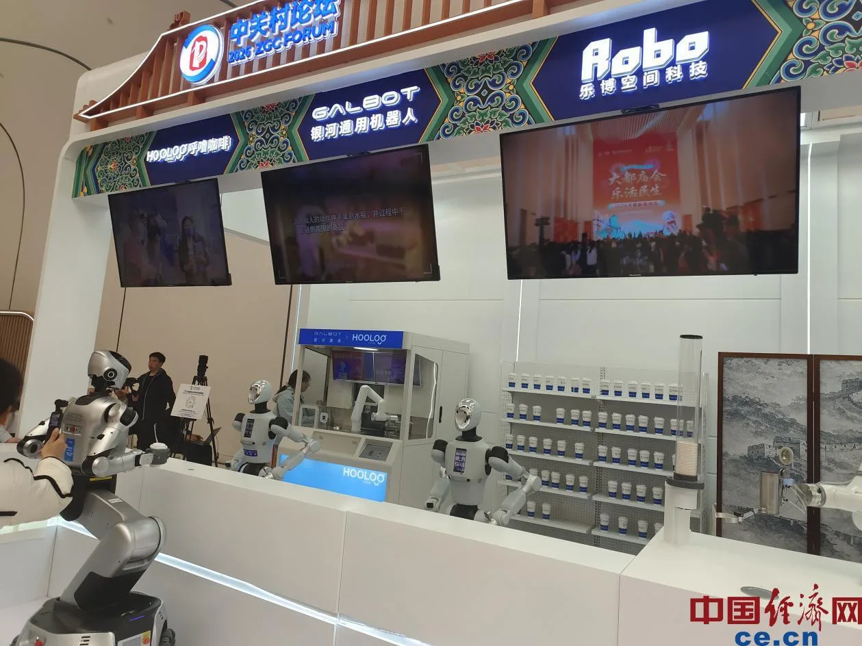 机器人餐吧将北京传统小吃融入轻餐饮场景,多品牌异构机器人通过统一调度平台,实现从点餐、制作到送餐的全流程自主协同作业。中国经济网记者 朱晓倩/摄