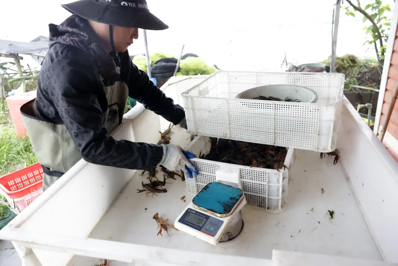 经过分拣后的小龙虾则以大小不同的价格给收购商收货。随后这些本地新鲜捕捞的小龙虾,很快就会销往温州各地上市,最快中午或者晚上就能端上市民的餐桌了。