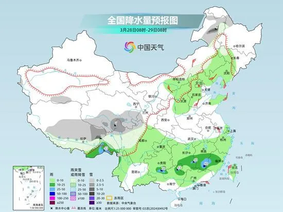 具体来看,中央气象台预计,今天,新疆南疆盆地东部、西藏中南部、青海北部、甘肃河西和西南部、川西高原北部、内蒙古东北部等地部分地区有小到中雪或雨夹雪,其中,西藏东南部、青海北部、甘肃河西等地部分地区大雪,局地暴雪;江南中东部、贵州东南部、广西北部等地部分地区有中到大雨,其中,江西东南部、福建西部等地部分地区有暴雨。