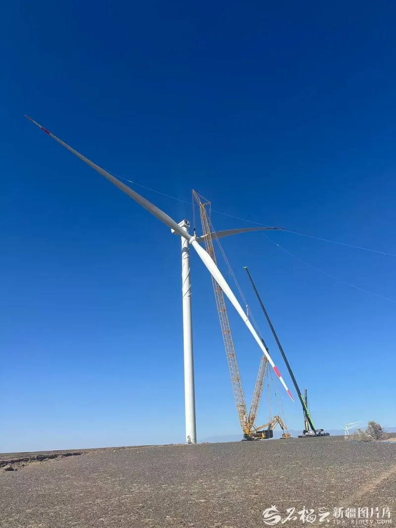 “在木垒大石头乡,企业布局建设260万千瓦风电和20万千瓦光伏项目,计划今年建成并网100万千瓦,近期正全力推进剩余40台风机吊装作业。”其亚新疆集团有限公司新能源项目现场负责人王海滨说。