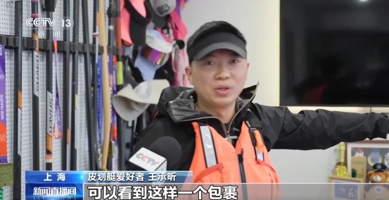 皮划艇爱好者 王承昕:这个包裹,它展开来就是5米多长的一条船,我可以随时随地地把它带到高铁上,带到飞机上,去任何一个风景比较好的湖或者海。