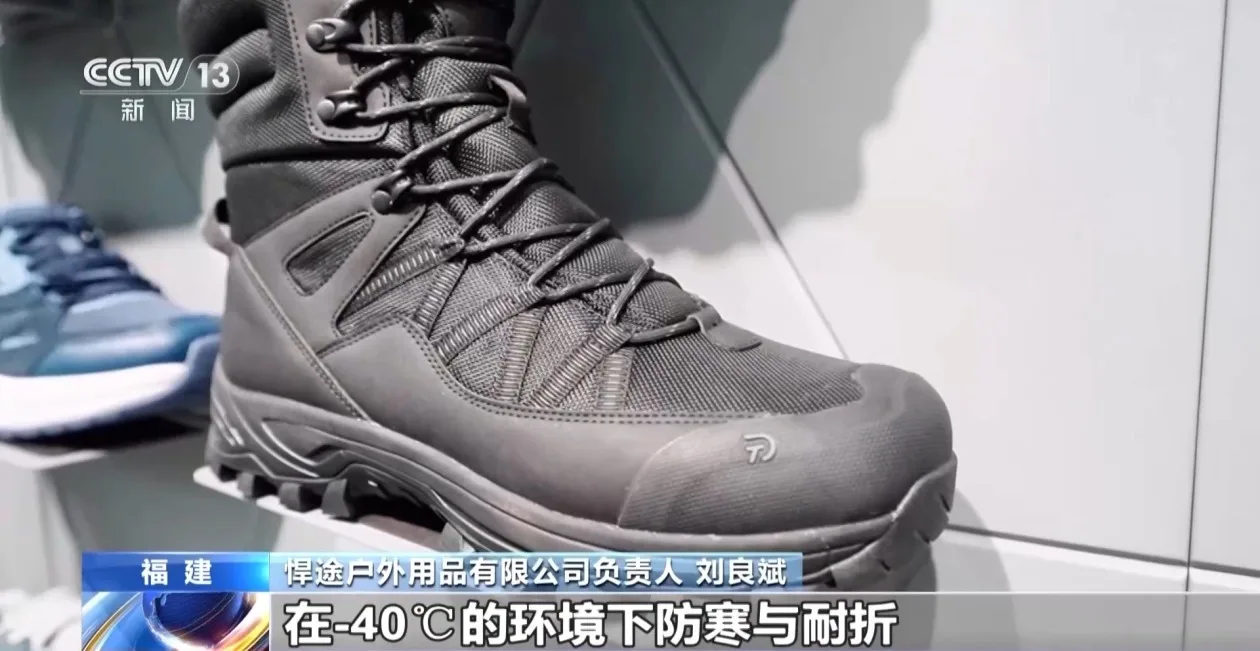 悍途户外用品有限公司负责人 刘良斌:这款鞋子客户要求在零下40度的环境下,防寒与耐折两方面性能都要达到一定标准,我们在最新款叠加态材料的基础上对鞋面进行特殊处理,最终满足了客户需求。