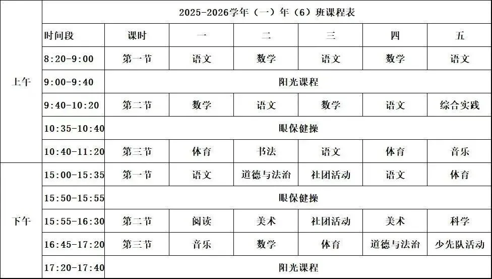 龙师附小课程表。图片来源:海峡教育报