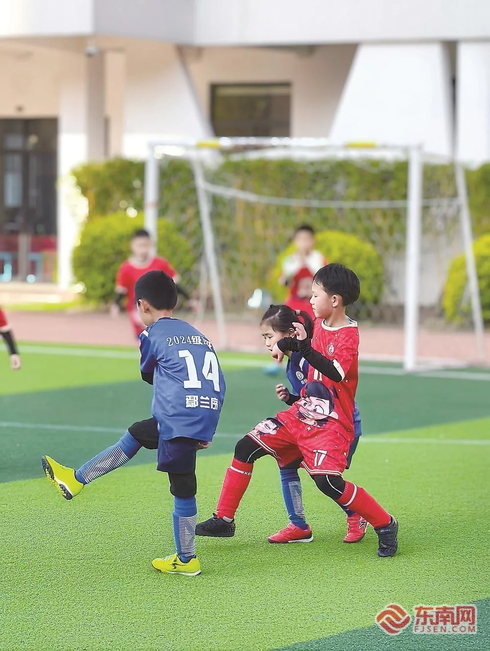 福州教育学院附属第四小学“容爱杯”班级足球联赛现场。图片来源:福建日报
