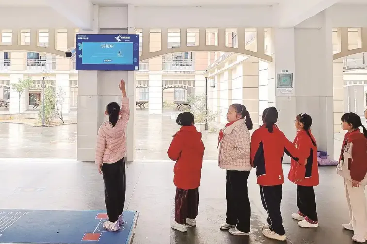 课间休息铃声响起,三明市明溪县实验小学同学们一个个迫不及待地起身,纷纷朝着教室外涌去。此时的AI智慧体育角,无疑是整个校园里最热闹的地方,同学们在这里尽情地“伸展筋骨”,享受着运动带来的快乐,欢快的笑声频频传出,交织成了一曲充满活力的运动乐章。