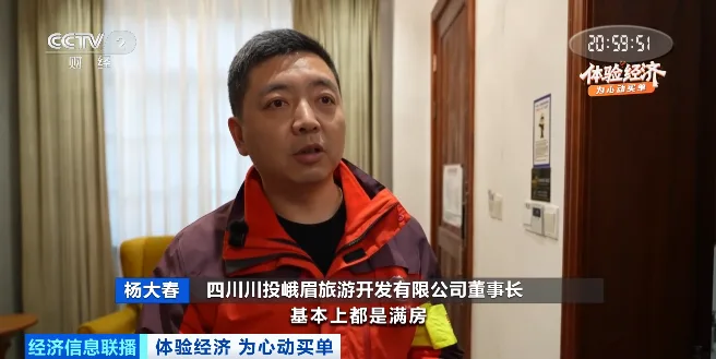 四川川投峨眉旅游开发有限公司董事长 杨大春:节假日的时候,住宿基本上是满房,游客需要提前预约,最长的有住一个月。