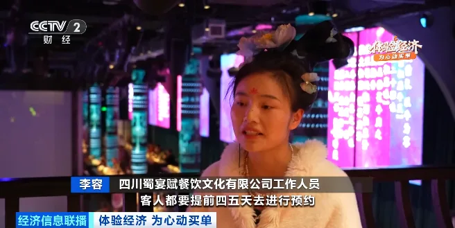 四川蜀宴赋餐饮文化有限公司工作人员 李容:几乎每天都是满座,要提前四五天预约,特别是节假日,可能要提前一周预约。
