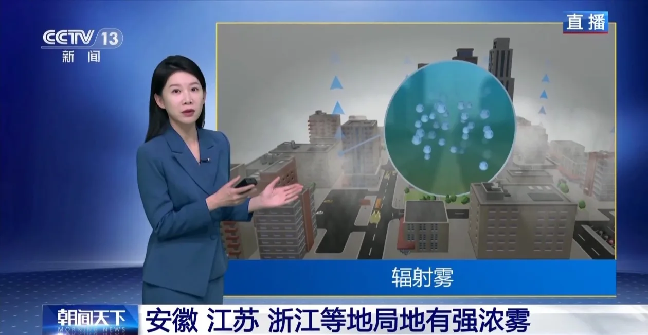 不过由于近地面湿度仍然比较大,今天早晨到上午安徽、江苏、浙江、江西、湖南、贵州多地将会出现大雾天气。其中安徽、江苏一带是辐射雾。辐射雾的出现通常是在晴朗微风的夜间或者清晨,地面热量快速散去,辐射冷却作用使近地面水汽凝结而形成雾。白天随着太阳升高,地面温度上升,辐射雾也会随即蒸发消散。