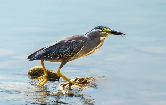 绿鹭,一种体型较小的鹭鸟,因其背部披有闪亮的蓝绿色蓑羽而得名。