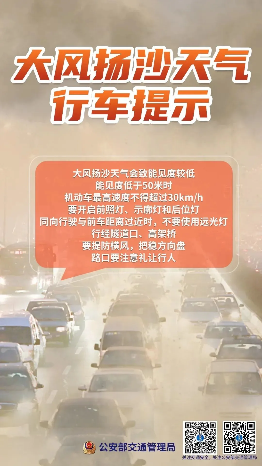 最后,大风天气、沙尘天气、雨天的安全驾驶技巧,也请有自驾外出需求的驾驶人多温习,做到牢记于心、牢牢掌握。