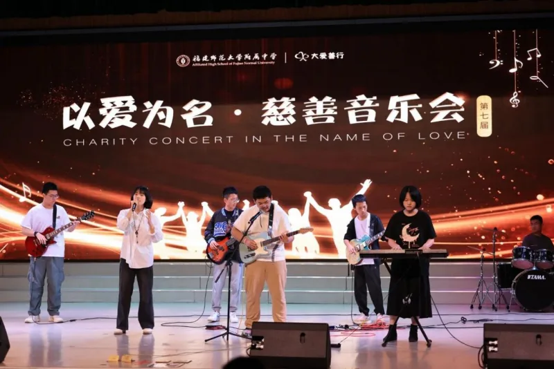 福建师大附中学生参加“以爱为名”慈善音乐会。