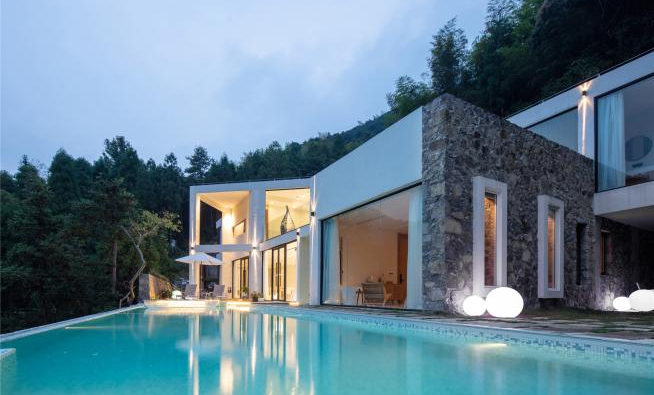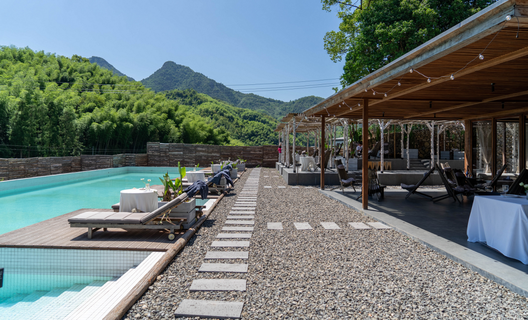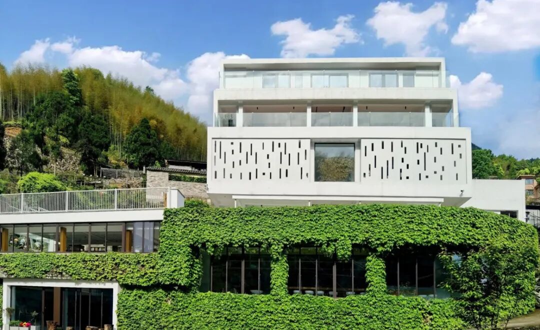 清水筑境,艺韵流淌,纸山文脉藏于其间。落地长窗框住山水,纸艺展品诉说古今,闲坐观景品茗,尽得乡野文艺清欢。