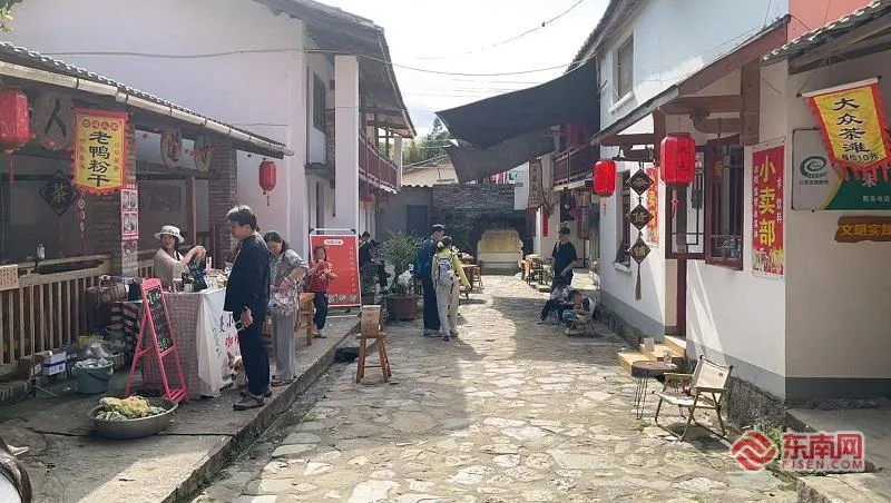 踏青的市民在村里选购商品。东南网记者 卢金福 摄