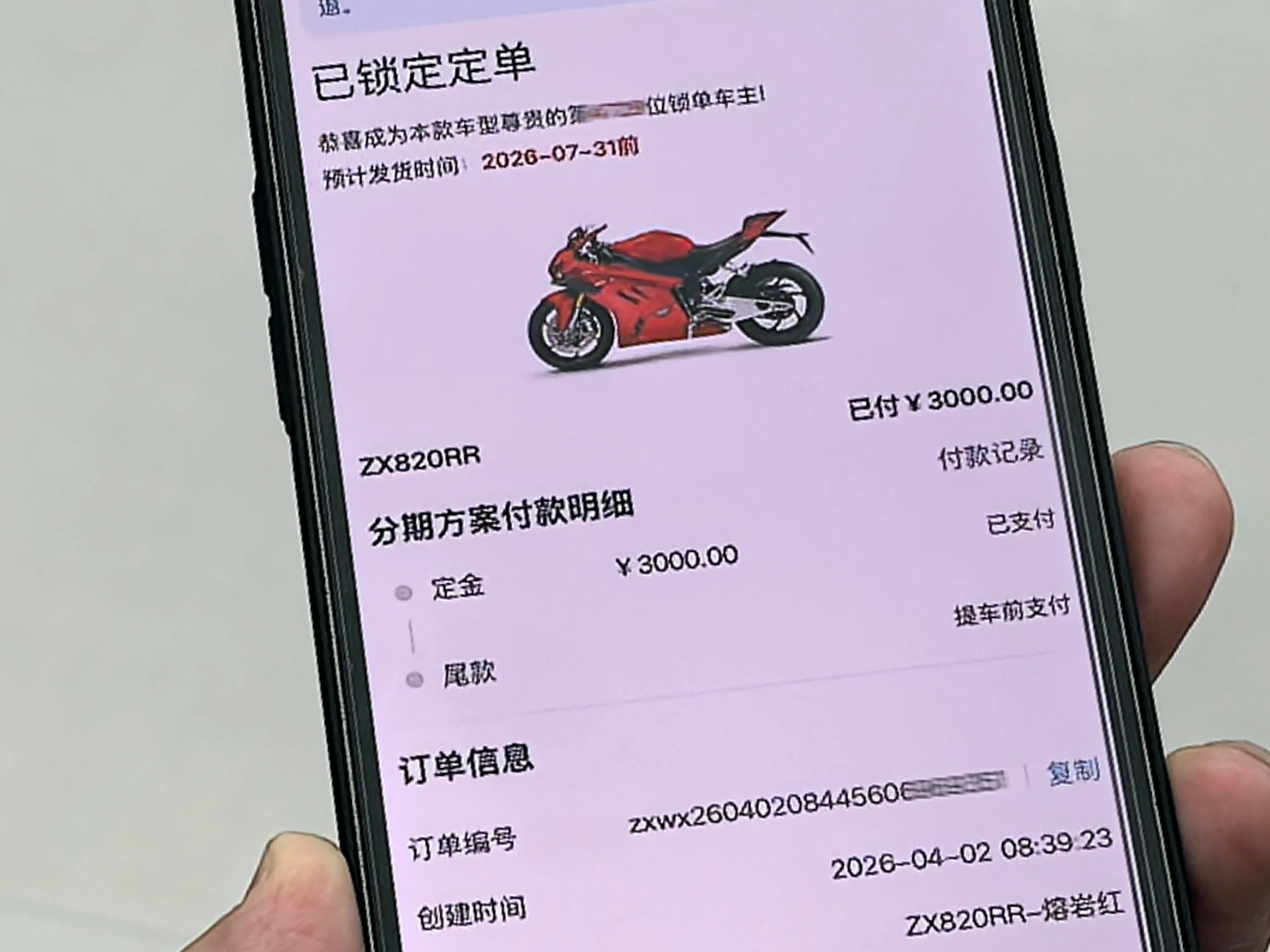 张雪机车订单界面