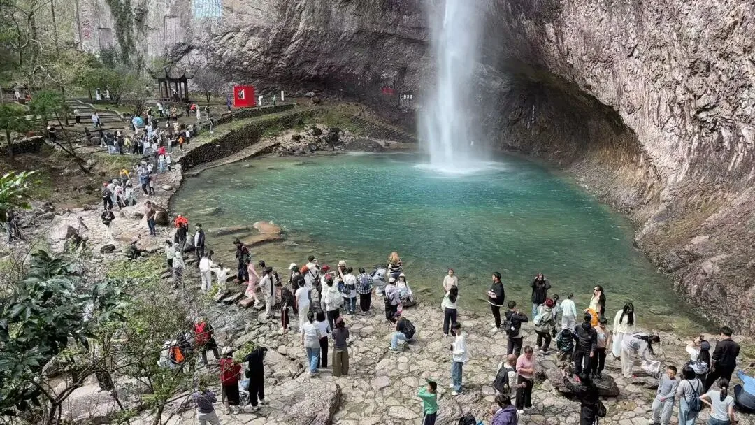 当日上午9时许,灵岩景区入口已排起长队,随处可见家长带着孩子“组团”出游。来自杭州的张先生一家四口,两个孩子免票,两位大人半价,“光门票就省了几百块,很划算。”景区内,世界地质公园研学之旅、非遗体验等特色课程成为“抢手货”,孩子们在导游带领下观察流纹岩地貌、聆听火山地质故事,寓教于乐。越剧折子戏、国潮NPC互动、龙眼祈福地打卡、网红咖啡店小憩……传统与时尚交织,让春日雁荡更添活力。