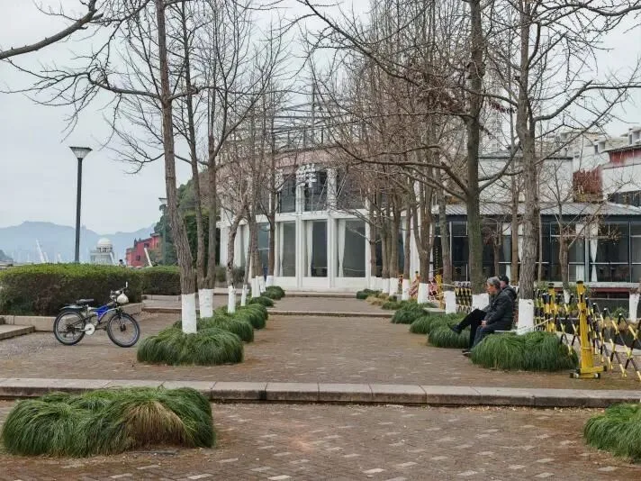 本次绿化提升以现状植被梳理与优化配置为核心。保留长势良好的无患子、桂花作为上层骨架,移除景观效果不佳的蒲葵,局部点植美人梅,打通视线通廊,实现瓯江景观的有效透景。
