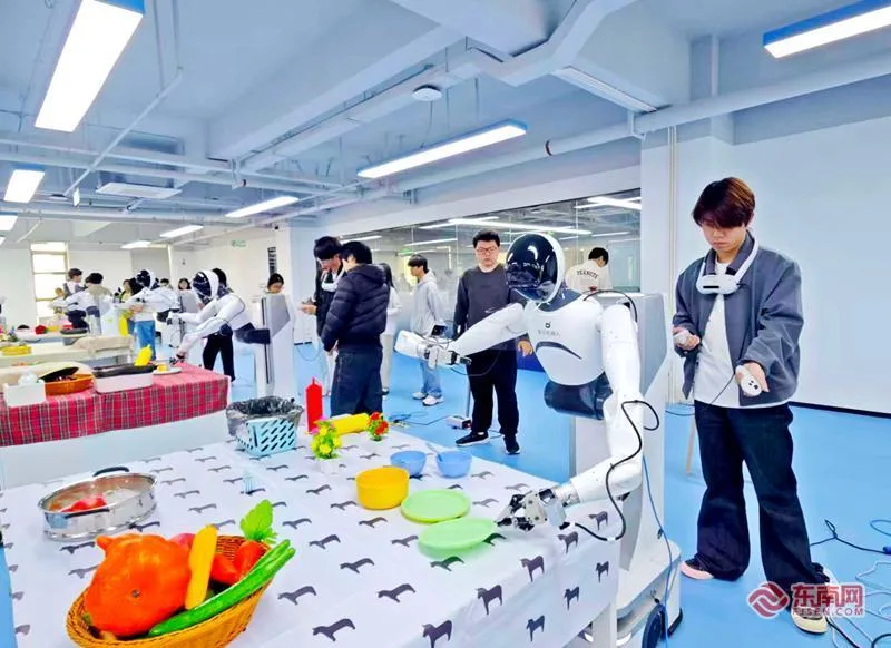 东南网4月9日报道(记者 林先昌 文/图)近日,在福州软件园D区的一间厂房里,一场特殊的“教学”正在上演。数据采集员头戴VR设备、手持操纵杆,抬手、抓取、叠放,身前机器人同步复刻动作,机械爪精准夹持纸杯,稳稳堆叠。这里是福建省具福科技有限公司(以下简称“具福科技”)打造的全省首个大型数据采集工厂,今年3月进入试运营。
