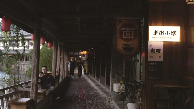 这里至今仍是村民散步、观荷、听戏的好去处。沿着300多米长的丽水古街商业长廊漫步,酒吧、饮食店、杂货铺林立,很是热闹。但令人意想不到的是,这条商业街的地基,最初只是一条堤坝,一侧就是碧波荡漾的丽水湖。