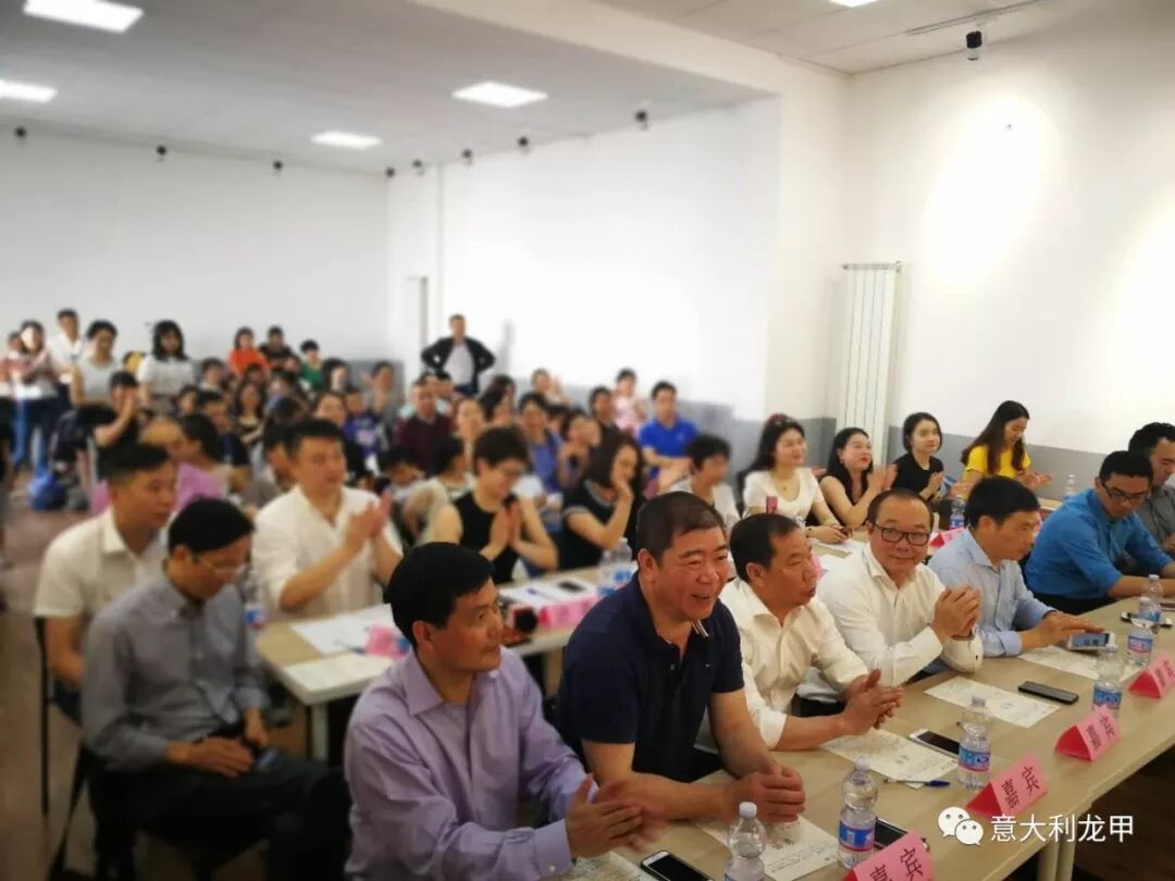 米兰侨界对本次比赛也提供了大力支持与协助,侨界代表周建煌、周立新、池小云、吴步双、胡守银、黄国权、叶平、蔡志荣、金瑞红、黄其顿等出席了活动。其中欧洲文成华侨华人联合总会会长吴步双先生作为侨界代表在发言中用一句话传达了海外千万华人的心声:“让祖国听到我们的思念、让世界听到中国的声音!”