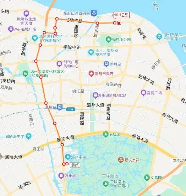 定制公交温州中学线以温州中学南门为始发站,途经英奇路、瓯越大道、南浦路、民航路、黎明西路、车站大道、江滨东路,终点为杨府山首末站。线路覆盖市体育中心西、蒲鞋市农贸市场等学生出行热点区域,学生无需换乘即可抵达家附近。