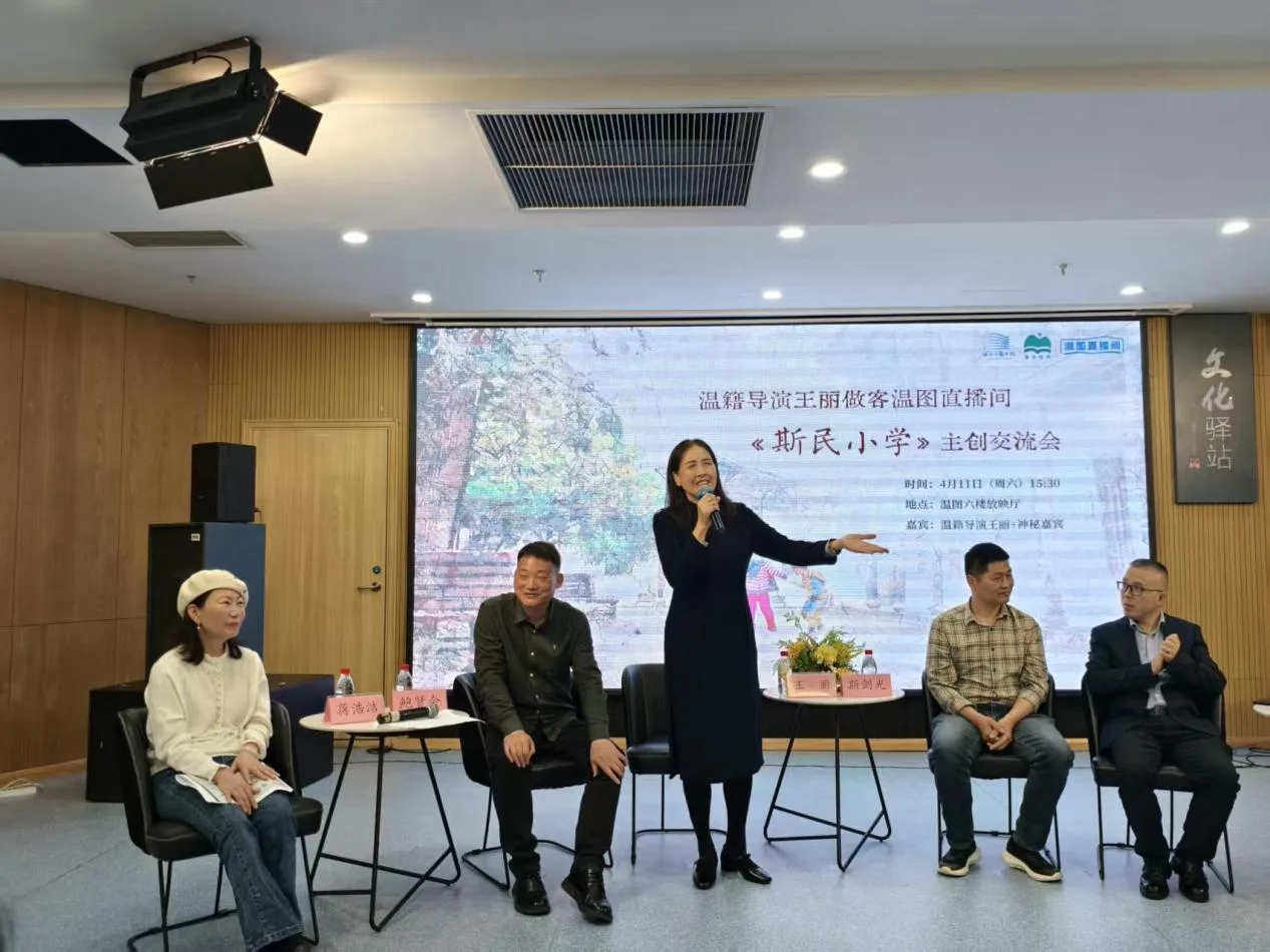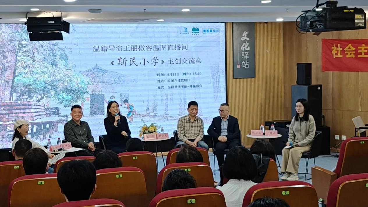 4月11日下午,温州市图书馆6楼放映厅座无虚席,《斯民小学》春日观影分享会在这里温情举行。温籍导演王丽亲临现场,携耗时八年拍摄的纪录片《斯民小学》与家乡读者共赴光影之约。活动特邀斯民小学校长斯剑光、乐清智仁小学校长鲍贤会、温州华侨职业中专副校长林日正、温州肯恩大学校办副主任蒋浩洁等嘉宾同台对话,围绕影片幕后、乡村教育现状与未来展开深度交流,吸引了现场80余名、线上6000余名读者热情参与。