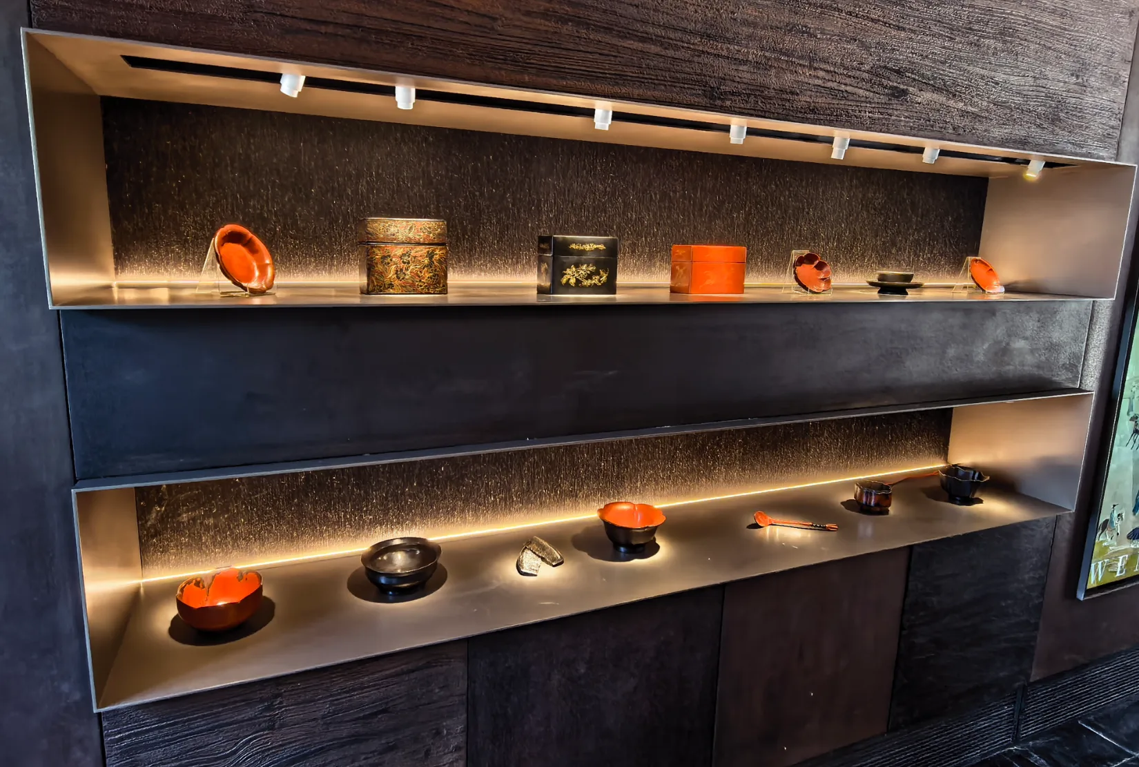 设于百年张氏民居内的温州漆器什物铺,则尽显非遗匠心。据浙江省非物质文化遗产“夹纻漆器”代表性传承人何必阔介绍,两宋时期温州漆器便享誉全国,加之遗址出土大量漆器实物,与历史高度契合,这也是在此设立漆器什物铺的重要原因。记者在现场看到,铺内陈设均由大漆匠人手工打造,巨型北宋汴京御街漆画屏风气势恢宏,复刻自各大博物馆的漆器珍品琳琅满目,吸引不少市民驻足观赏、细细品味。