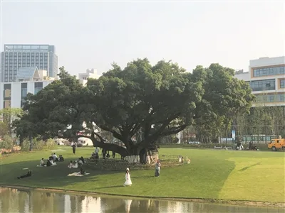 温州情缘:园博园内9株百年古榕树作为原址保留。在温州,老城区的街巷里、公园的池塘边,总能见到小叶榕的身影。温州人爱在小叶榕下乘凉、下棋、听故事——它就像一位默默守护的大朋友。小叶榕根系深扎大地、枝繁叶茂,正像瓯越文化一样,根深叶茂,代代相传。