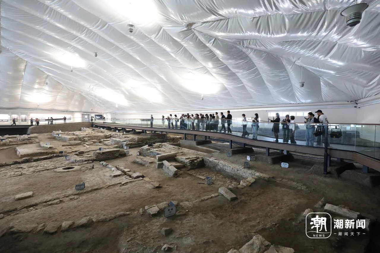 步入遗址展示馆的旋转门,“斗转千年”的仪式感油然而生。特制旋转门可稳定棚内气压、减少空气对流,轻轻一推,便从当前“跨进”千年之前。温州市文物考古研究所所长梁岩华告诉记者,遗址展示馆作为核心保护展示建筑,采用“轻、快、稳”气膜结构,自重轻、搭建快,不需要柱子,不会对遗迹本体造成侵扰,同时通过可调控温湿度的内部环境为遗迹提供“安稳的家”。环顾四周,码头、沉船、栈道、瓷片堆静静躺在那里,与现代城市隔窗相望。展示馆内四大展区由内而外自然延伸,与户外遗址群全景联动。7号、9号码头的地层叠压遗迹清晰可辨,唐代、宋代、元代、明代、清代,一层又一层,仿佛一部翻开的史书。AR屏幕生动还原了码头当年的营建方式和使用场景,正是“科技赋能”的生动体现。