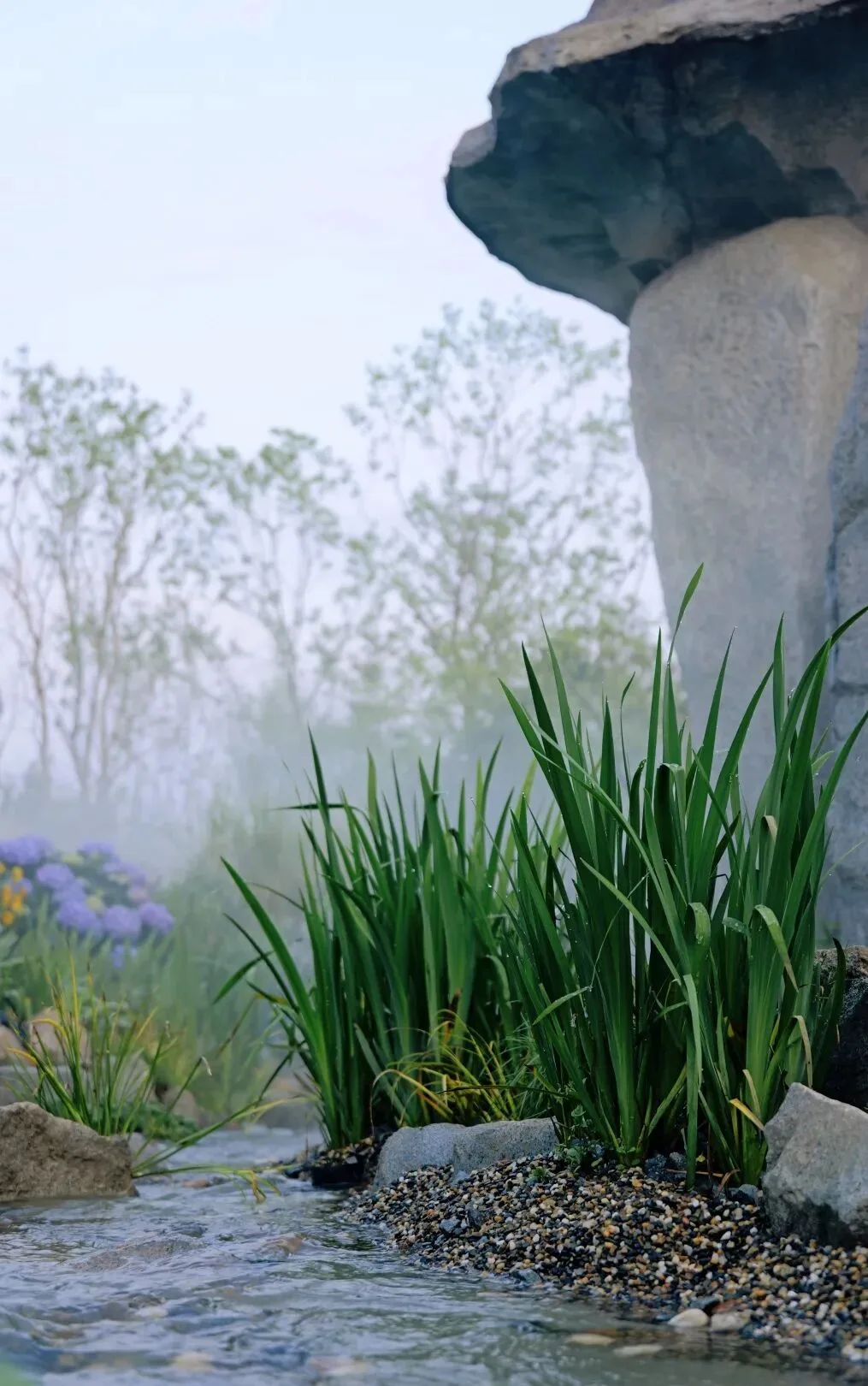 溪水边,曲水流觞不再是画中的旧事。你可以真的临水而坐,看羽觞顺流而来,停在你面前时,便取杯小酌,或随口吟一句诗。不必是诗人,此刻清风落花作伴,你便是兰亭雅集里的那个人。汉服的衣袂在园中翩跹而过,与石宕、戏台、花境相映成趣——随手一拍,便是江南。