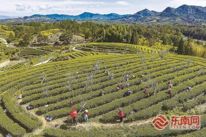 4月4日,永泰县同安镇官路村生态茶园内,村民正忙着采摘永泰细茶(明前茶)。来源:东南网