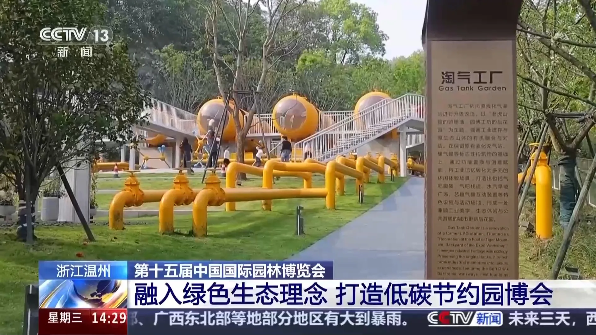 第十五届园博会筹办工作指挥部办公室常务副主任 黄悌敏:我们构建了“1个主会场+13个分会场+49个博览点”的“一园多点 全城园博”体系,一共安排了将近600场活动,我们将努力把温州园博会打造成为温州市民共享的城市节日。