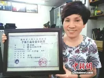章华妹拿着全国第一张个体工商业营业执照影印件。温州市委宣传部供图