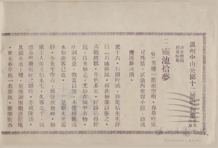 《温州中山公园十二景唱和集》1931年铅印本,温州市图书馆藏。