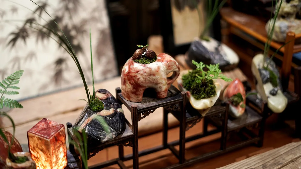 曾几何时,泰顺石似乎只玩“高端局”,高端艺术品精美却小众。富有眼光的工匠与青年设计师将边角料打磨成了网红:掌中宝微盆景、茶桌倒流香、泰顺石氛围灯、文创盲盒等200多种文创产品,价格亲民、设计精巧,切入了年轻消费市场和生活美学赛道。从卖原料到卖设计、卖文化,边角料也实现了价值跃迁。泰顺龟湖镇组织委员李欣欣介绍,目前销售面已覆盖广东、福建等10多个省份。