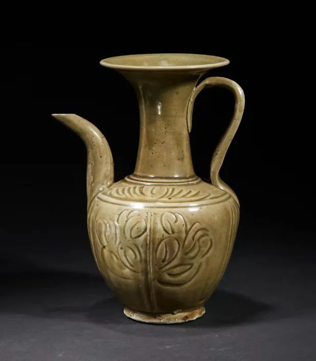 北宋瓯窑青釉剔刻花卉纹瓜棱执壶