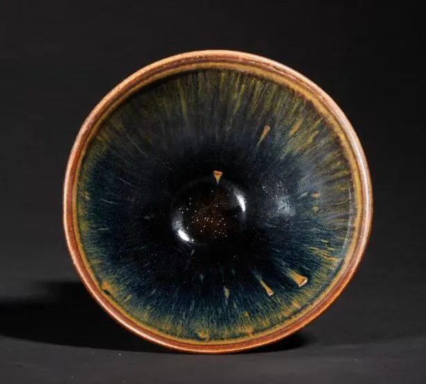南宋建窑黑釉金丝兔毫纹瓷盏
