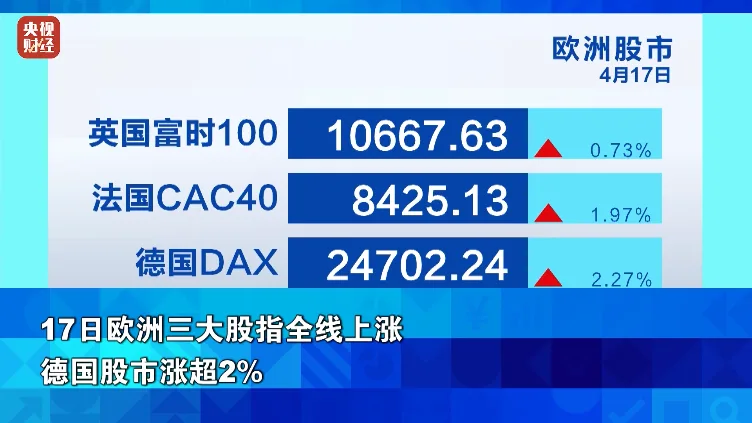 17日欧洲三大股指全线上涨 德国股市涨超2%