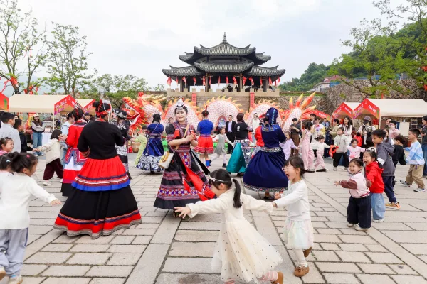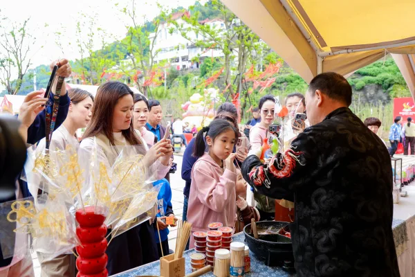 广场上,数十个非遗摊位次第排开,太平钿剪纸、温州蛋画、手工制陶、吹糖人等非遗好物在匠人指尖诞生。一旁的非遗演艺轮番登场:畲族竹竿舞节奏明快、动作灵动;茶艺师行云流水冲泡“杏黄汤色、玉米甜香”的平阳黄汤;非遗高皇歌则以古老歌谣诉说畲族历史传承。“没想到坡南古街这么有味道。”从温州市区特意赶来的游客陈女士笑着说,“孩子第一次体验畲族竹竿舞,玩得特别开心。还能近距离感受非遗,比课本生动多了。”