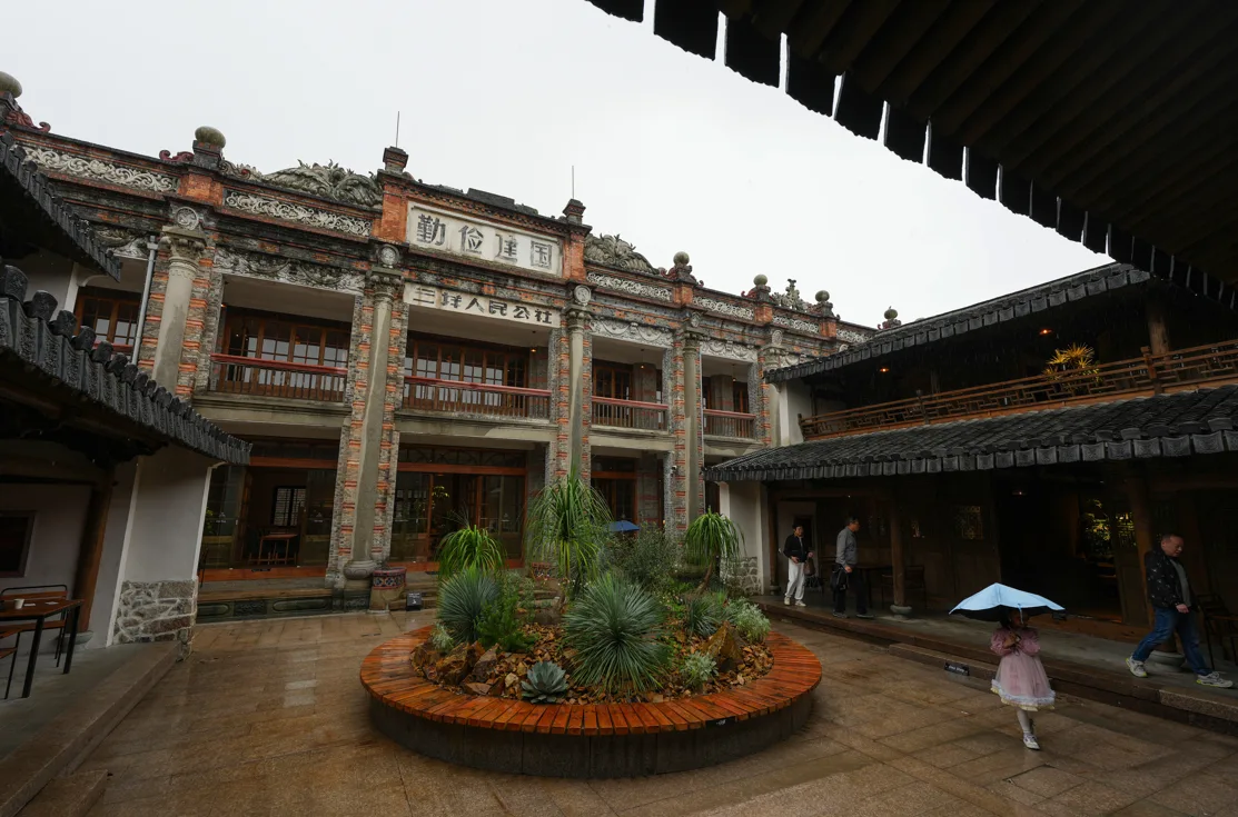 一尺花园浙南首店位于三垟湿地景区核心位置——茶花园周氏旧宅内,建筑面积约2800平方米。这组建筑群始建于晚清至民国时期,由当时实业家周衡平重金兴建,是浙南现存规模最大的单体中西合璧式建筑之一,也是湿地内唯一一处省级文物保护单位。