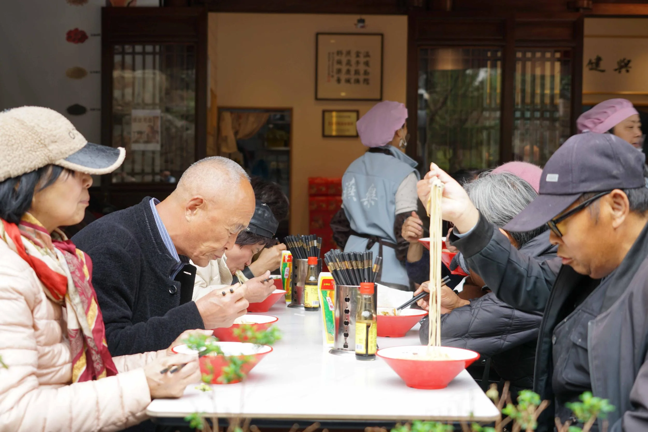 在温州市区西片的松台山脚下,一家名为“安福长寿面”的面馆近来成了人们口口相传的新去处。每天中午,这家面馆向市民免费提供600碗素浇面,不设门槛,不问来由,进门皆可落座。这碗热气腾腾的面条,如同一根无形的线,将附近老人、环卫工人、外卖小哥乃至过往游客的心串联起来。一家小小的公益面馆,何以有如此吸引力?