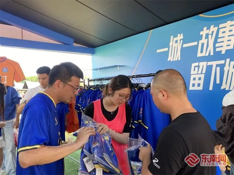 “太有氛围感了,像过节一样。”福州市民陈晓波带着妻儿和父亲一家四口专程前来观赛。一家人早早到场,打卡拍照、逛逛市集,选购球衣,全程兴致满满。陈晓波坦言,得知“闽超”举办,便立刻在网上抢票,“难得在家门口办这么棒的赛事,不仅想支持家乡球队,还想让喜欢足球却没看过现场比赛的孩子感受这份热烈氛围。”