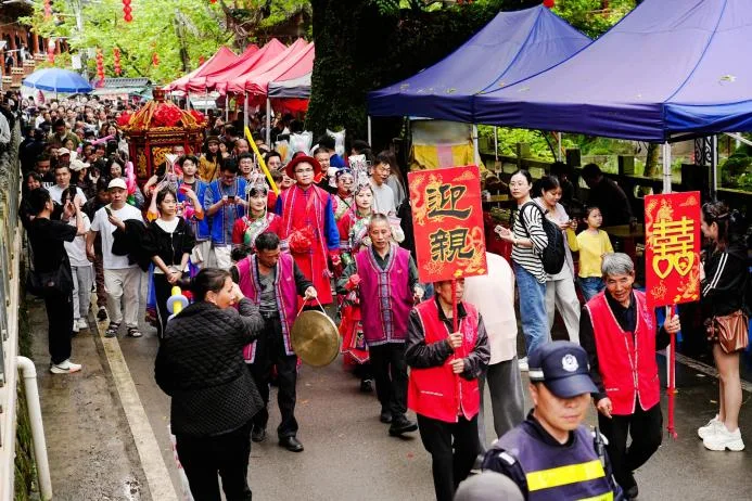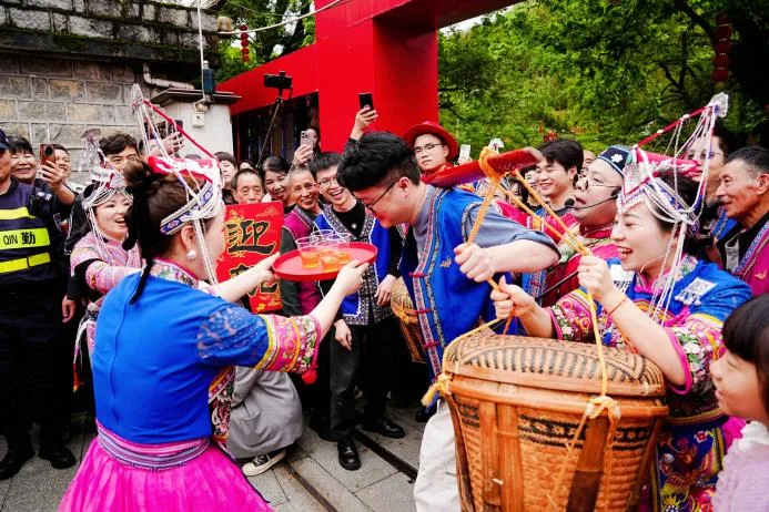 活动当天,青街畲乡还原呈现了传统畲族婚嫁巡游场景:在锣鼓唢呐的伴奏中,迎亲队伍身着畲族传统服装,抬红轿迎娶新娘,以流动巡游的形式,将畲族古老“山哈”婚俗文化完整呈现给游客,让观众沉浸式感受畲族传统文化魅力。青街乡村民钟女士介绍,这种活态展示的方式,无论是对畲族青年传承文化,还是让外地游客了解畲族,都有很好的效果。