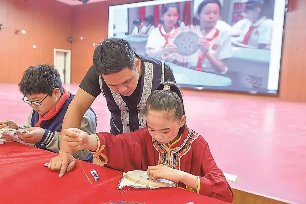 福建省省级非遗代表性传承人兰银才现场教授畲绣。