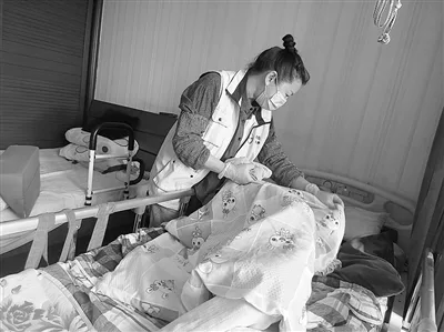 护理员杨再莲在给常阿公做护理