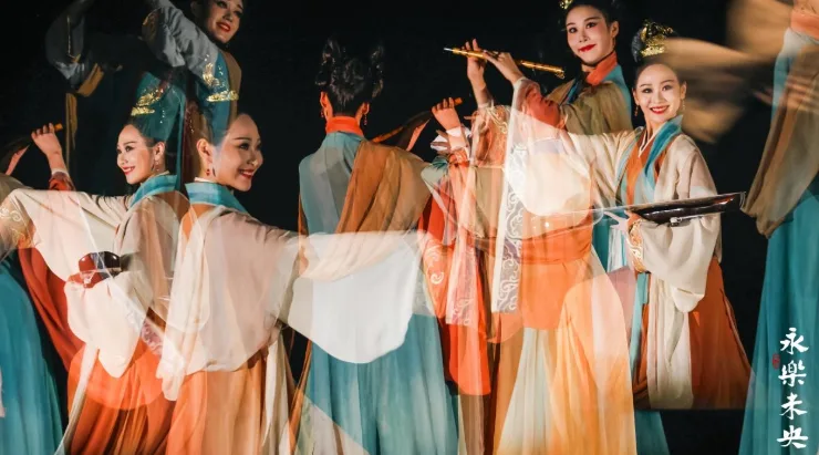 舞剧《永乐未央》以永乐宫迁建史诗为叙事主线,创造性地提炼出“古建、壁画、琉璃、传承”四重美学维度,分为四个篇章:“筑广厦”“绘至境”“炼釉心”“承光阴”。