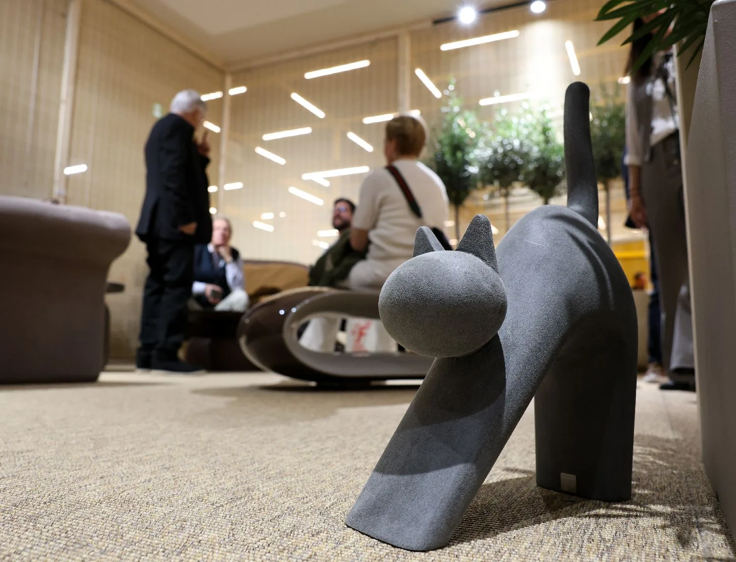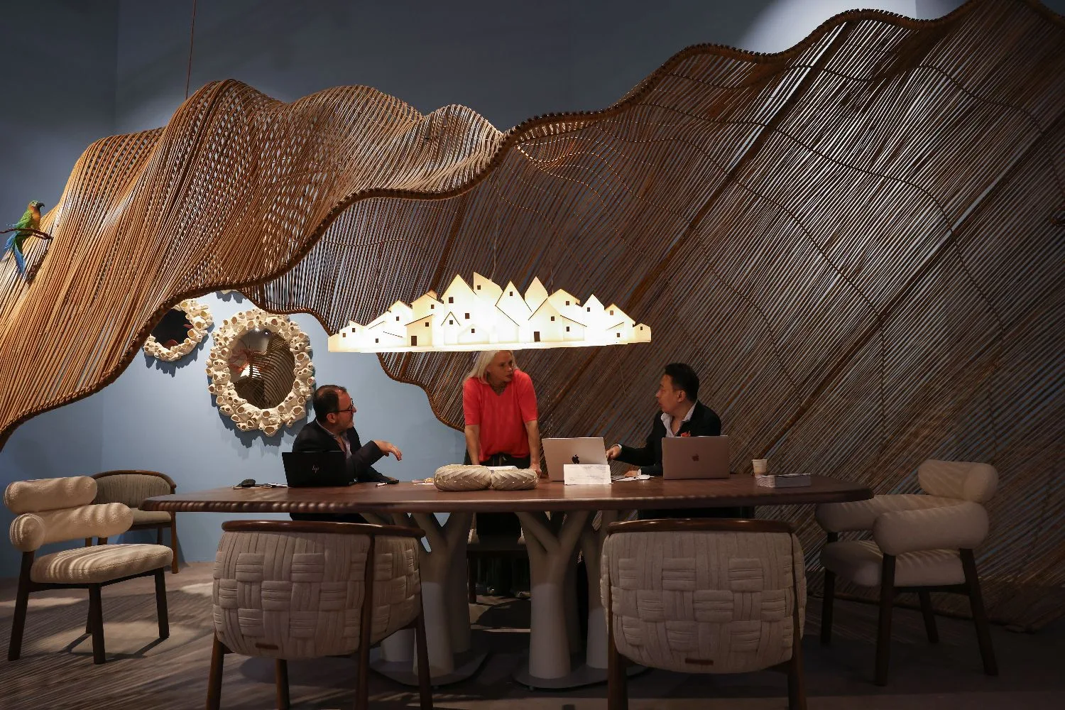 4月21日,在意大利米兰国际会展中心,展商在米兰家具展上洽谈。(图片来源:本文图片均据新华社)